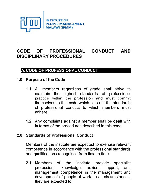 All members regardless of grade shall strive to maintain the highest standards of professional practice within the profession and must commit themselves to this code which sets out the standards of professional conduct to which members must adhere.